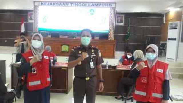 Hadir dalam kegiatan tersebut Kepala Kejaksaan Tinggi Lampung Heffinur, Wakil Kepala Kejaksaan Tinggi Lampung Edyward Kaban, Asisten Pengawasan Yusnani, Ketua Ikatan Adhyaksa Dharmakarini Yuniar, Kepala Bagian Pengelolaan Donor UDD PMI Provinsi Lampung Sri Berdikarina dan Kasie Adm Donor Sujiati.