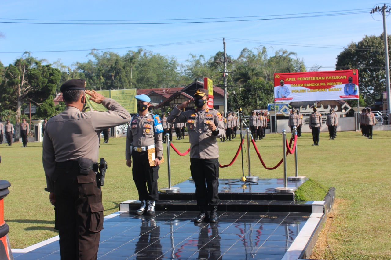 LAMPUNG BARAT (MDsnews) – Polres Lampung barat melaksana kan giat Apel Pergeseran Pasukan dalam rangka Pil Peratin di lapangan Mapolres Lampung Barat. Rabu ( 28/07/2021 ).