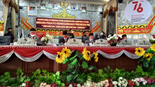 LAMPUNG UTARA (MDsnews) – Dalam rangka Peringatan Hari Ulang Tahun Republik Indonesia Ke-76, DPRD Kabupaten Lampung Utara (Lampura) mengadakan Sidang Istimewa HUT Republik Indonesia dalam agenda mendengarkan Pidato Kenegaraan. Senin (16/8).