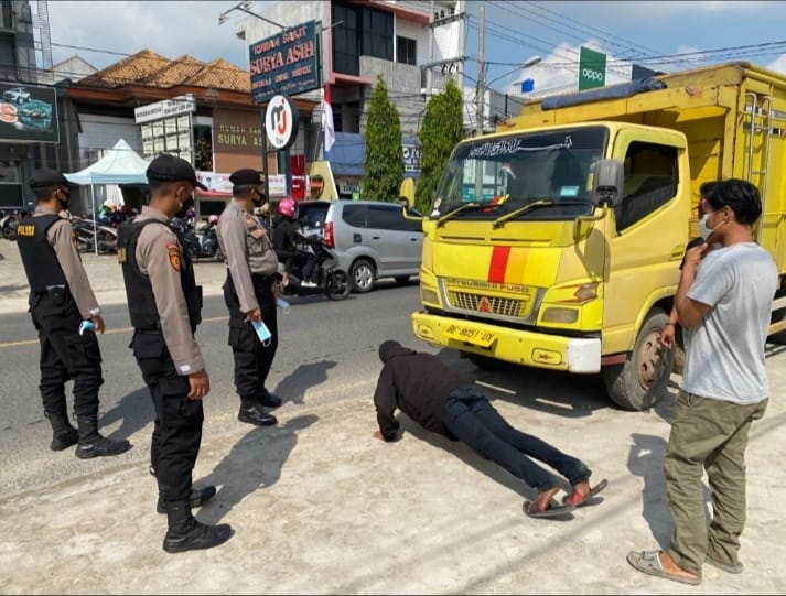 Jadi setiap warga yang kedapatan melanggar prokes kita berhentikan, kemudian diberikan teguran serta imbauan dan juga sanksi antara lain menyanyikan lagu nasional atau push-up, dengan tujuan bukan untuk mempersulit namun supaya menjadi efek jera.
