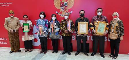 JAKARTA- Pemerintah Provinsi Lampung melalui Dinas Peternakan dan Kesehatan Hewan meraih penghargaan Piagam Abdi Bakti Tani Tahun 2021. Piagam penghargaan tersebut diserahkan di Kantor Pusat Kementerian Pertanian Jakarta pada Selasa, 17 Agustus 2021.