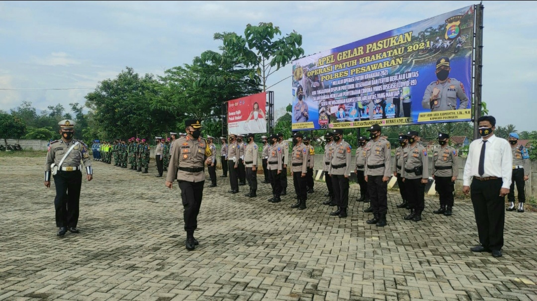 Pesawaran, (MDSnews) – Gelaran Apel Pasukan Operasi Patuh Krakatau 2021 dipimpin langsung Kapolres Pesawaran AKBP Vero Aria Radmantyo, di Lapangan Apel Mapolres setempat, Senin (20/9/2021).