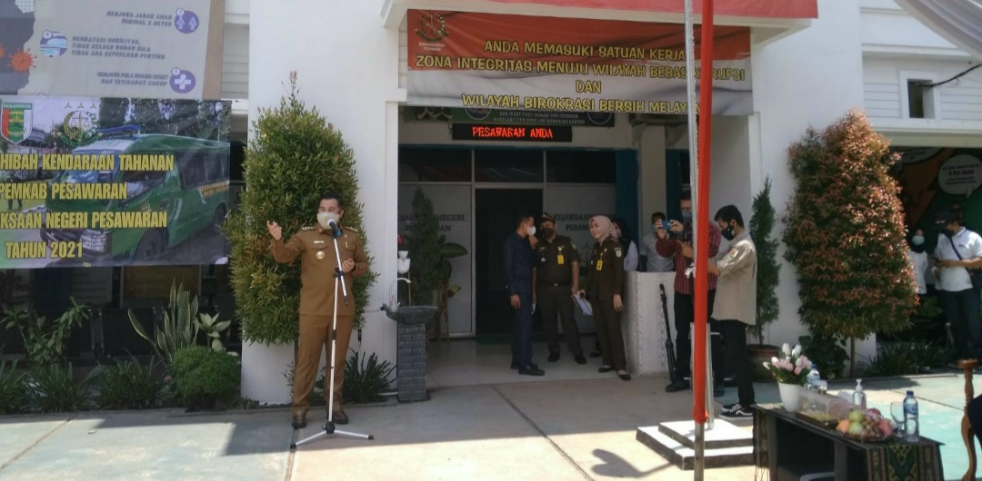 Acara penyerahan hibah kendaraan tahanan tersebut dilakukan di halaman Kantor Kejari Kabupaten Pesawaran, Selasa (21/9/2021).