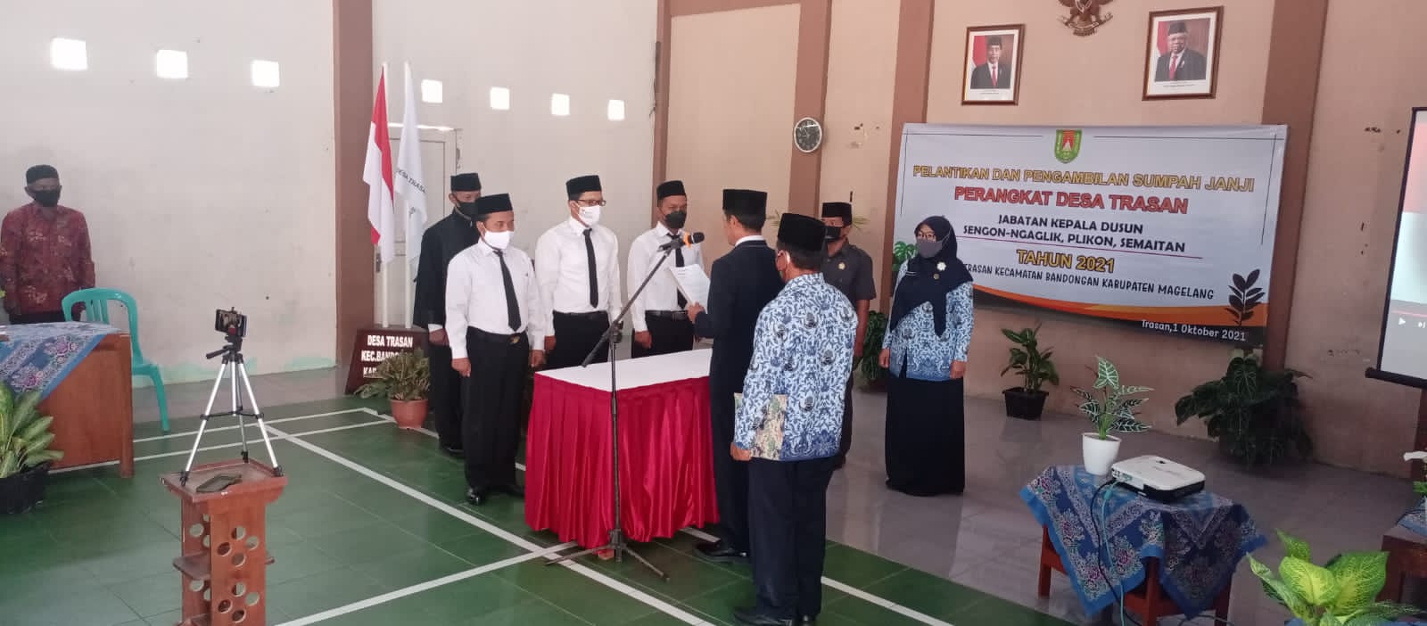 Sesuai dengan surat kepala Desa Trasan : Nomor : 180.192/18/KEP/2007/2021 tanggal 01 Oktober 2021 perihal rekomendasi persetujuan pengangkatan perangkat Desa dan surat Keputusan Kepala Desa Trasan tentang pengangkatan Nugroho sebagai (Kadus Dsn. Sengon-Dsn. Ngaglik), Khoyim (Kadus plikon) dan Izuddin Adi Nugroho sebagai (Kadus Dsn. Semaitan) Desa Trasan di lingkungan Pemerintah Desa Trasan Kecamatan Bandongan.