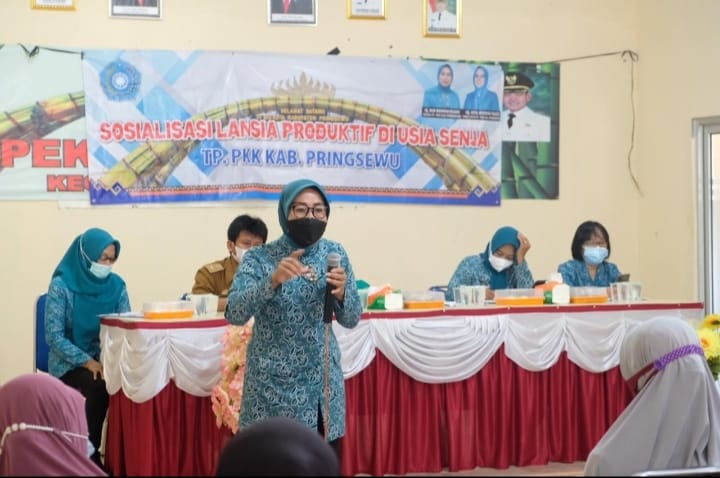 Pringsewu,(MDSnews)-TP-PKK Kabupaten pringsewu kembali lakukan Sosialisasi Lansia Produktif di Usia Senja, bertempat di pekon Enggalrejo Kecamatan Adiluwih. Selasa, 05/10 /2021.