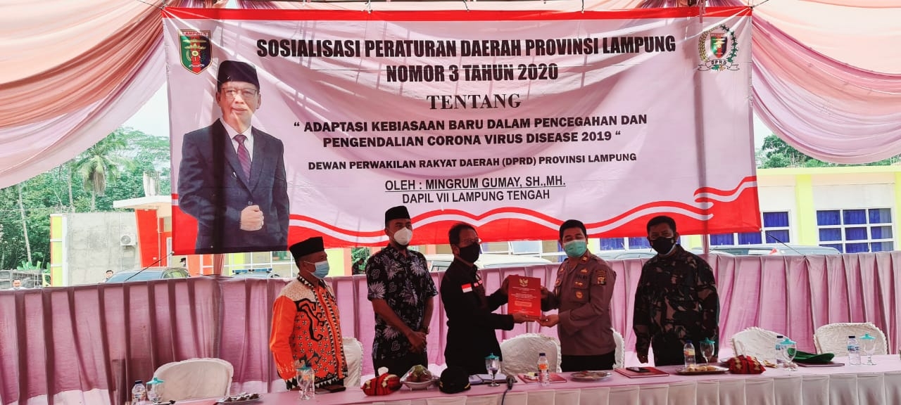 Mingrum Gumay; Sosialisasi Perda covid 19 di Kecamatan Kali Rejo Lampung Tengah