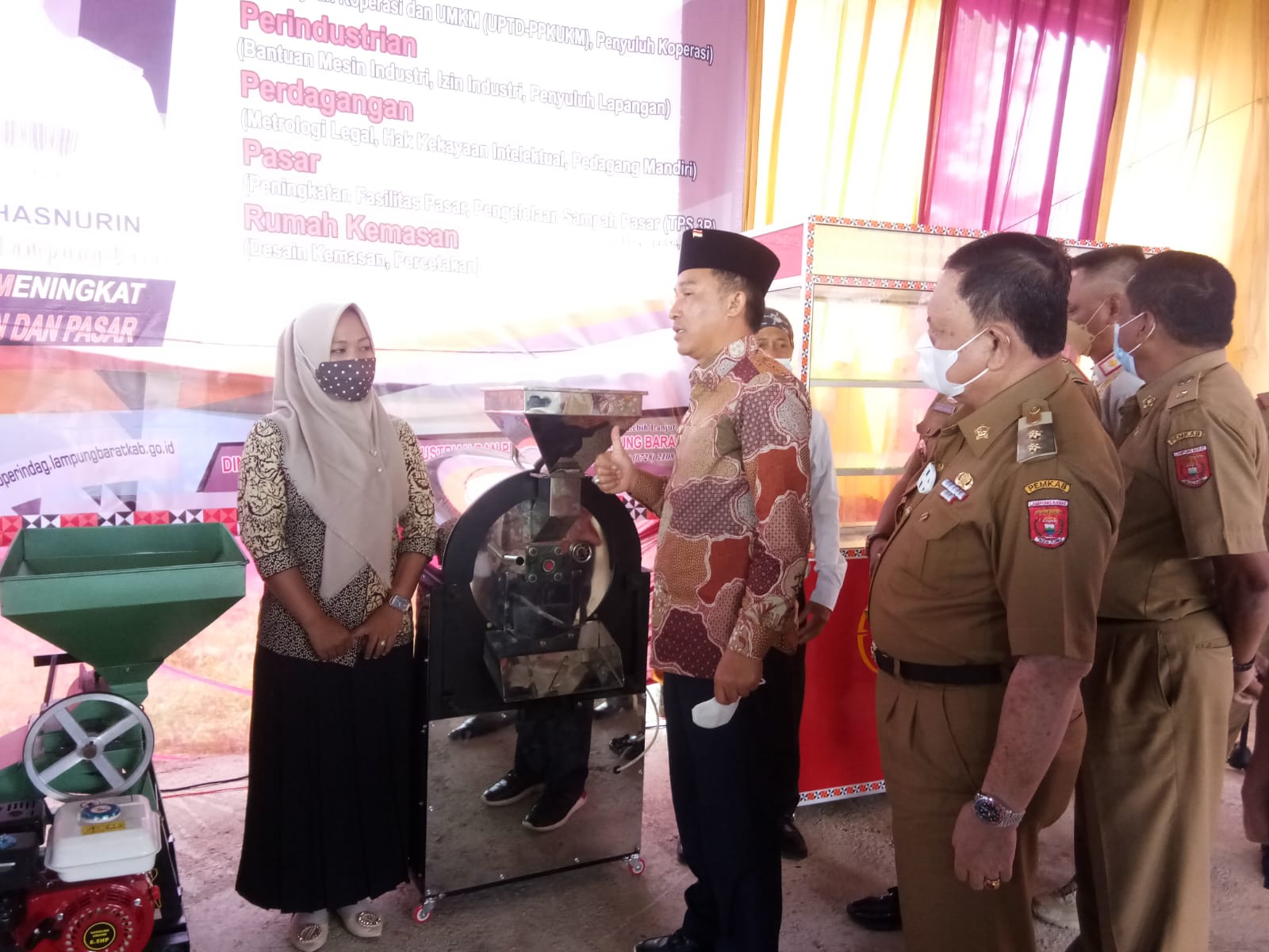 Lampung barat (MDsnews) – bupati lampung barat H parosil mabsus,SP,d di dampingi wakil bupati H mad hasnhurin menyerah kan secara simbolis bantuan alat industri,sarana perdagangan dan bansos bagi usaha mikro kecil dan menengah (UMKM) tahun 2021 di rumah dinas bupati.