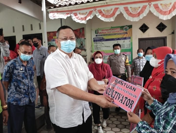 Pringsewu (MDSnews) – Ketua Komisi IV DPR-RI Fraksi PDIP Sudin.SE, memberikan bantuan alat mesin pertanian (alsintan) Serta bibit bawang kepada kelompok tani (Gapoktan) dan Kelompok wanita tani (KWT) kabupaten pringsewu, penyerahan dilakukan saat reses di Balai Pekon Bulurejo Kecamatan Gadingrejo Minggu (17/10/21) siang