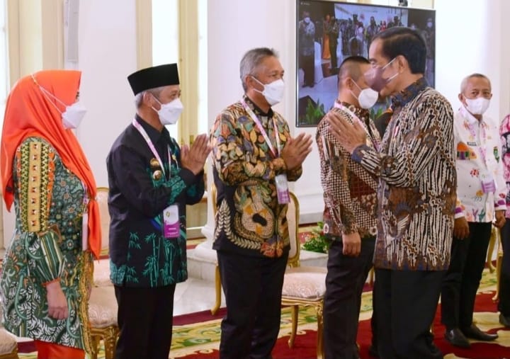BOGOR (MDSnews) – Bupati Pringsewu Sujadi merupakan salah satu dari 25 bupati se-Indonesia yang mendapat kehormatan diundang khusus dan diberi kesempatan untuk hadir secara langsung ke istana menyaksikan pembukaan APKASI Otonomi Expo (AOE) 2021 secara langsung di Istana Kepresidenan Bogor. Sementara ratusan bupati lainnya mengikutinya secara virtual.