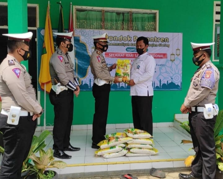 Tanggamus (MDSnews) – Dalam rangka memeriahkan hari Santri Nasional Tahun 2021, Sat Lantas Polres Tanggamus melaksanakan penyaluran bantuan sosial (Bansos) berupa bahan pokok di Pondok Pesantren (Ponpes) wilayah Kecamatan Gisting, Sabtu (23/10/21).