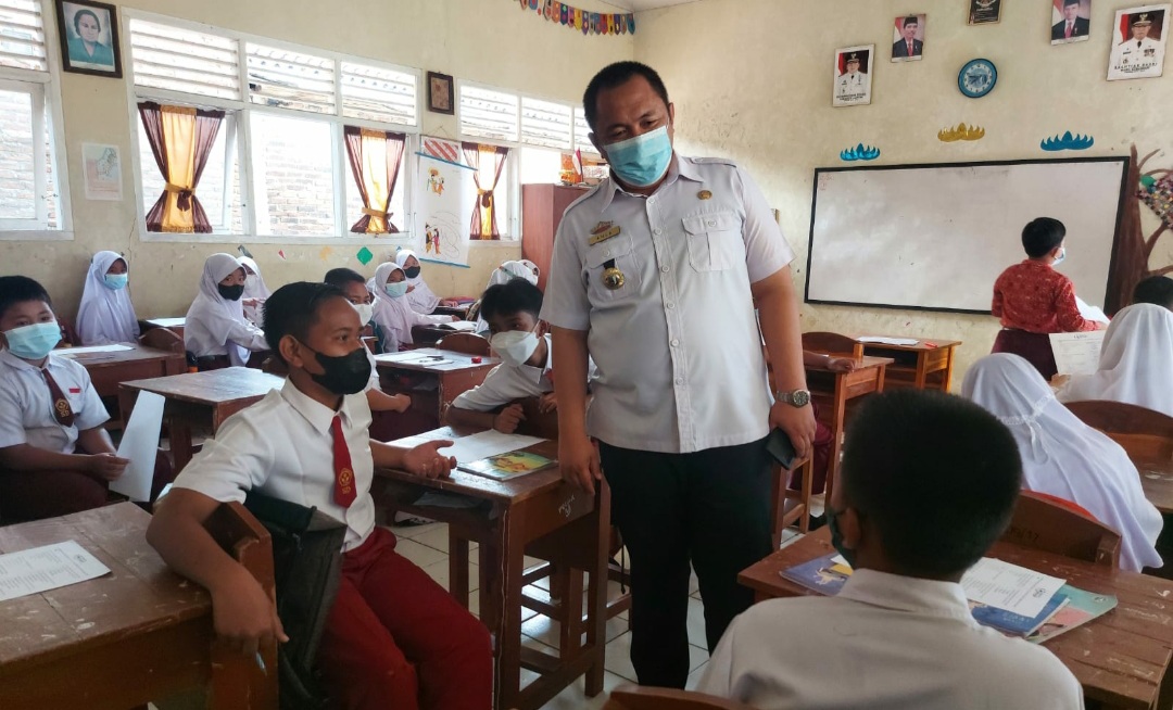 Pesawaran (MDSnews) – Kepala Dinas Pendidikan dan Kebudayaan (Disdikbud) Kabupaten Pesawaran, berkeliling ke sejumlah sekolah yang ada di Kecamatan Gedong Tataan pastikan pihak sekolah menerapkan protokol kesehatan (Prokes) dengan ketat di area sekolah.