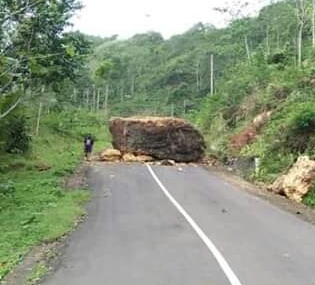 “Kula kinten wau dalu kedadosanipun longsor punika, watu ageng nutup margi, lajeng angkutan ingkang saben ndinten liwat ing mriku kedah muter nlusup nlusup,” kata Sumarto warga Gunung Kelir Jatimulyo Girimulyo Minggu (31/10/21).
