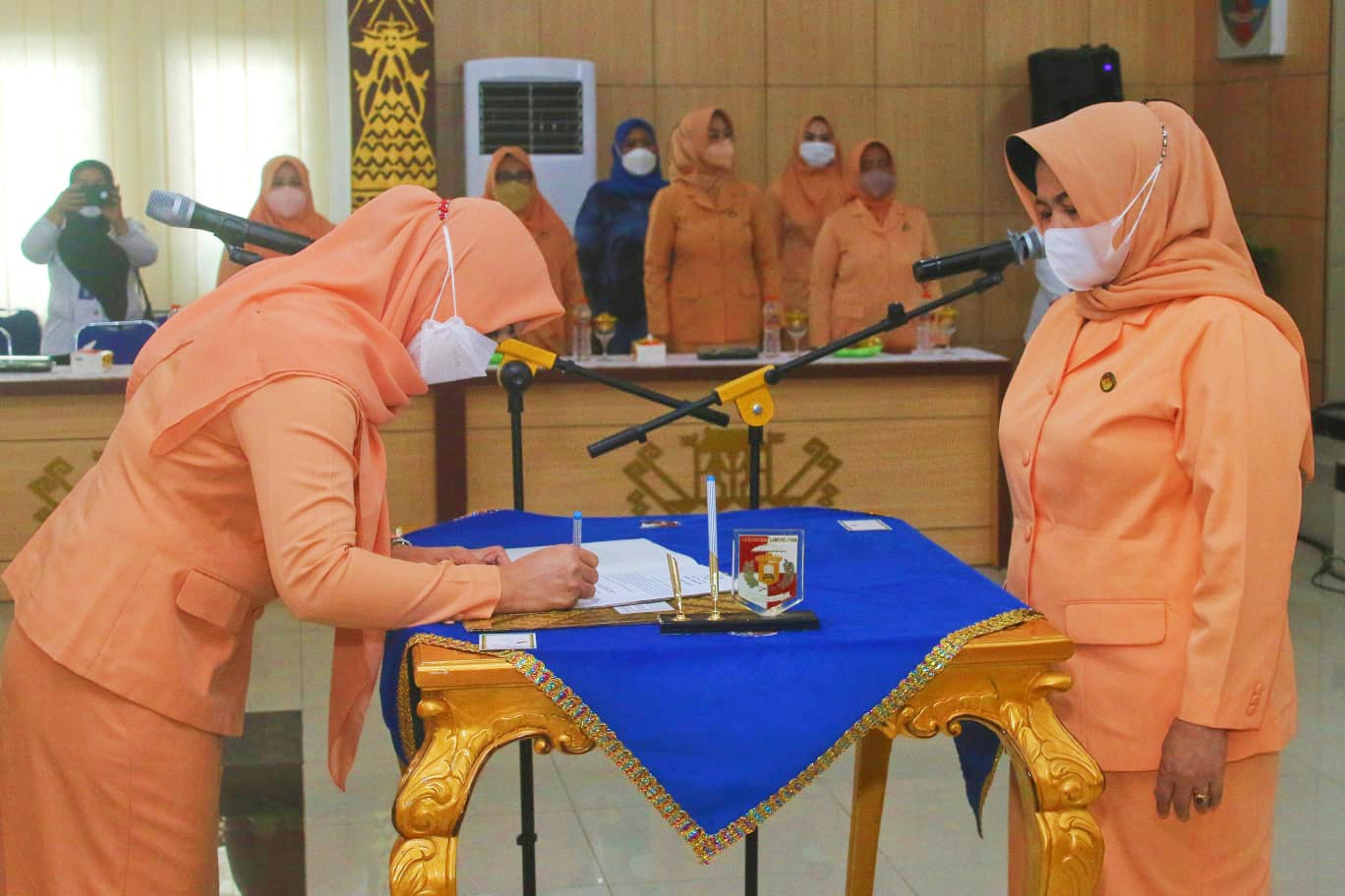 Pengukuhan pengurus berlangsung di Ruang Tapis, Setdakab Lampung Utara, Rabu (03/11/2021). Hadir juga Penasehat DWP Kabupaten Lampung Utara Hj. Nur Endang Sulastri Budi Utomo, S.Pd., M.M.