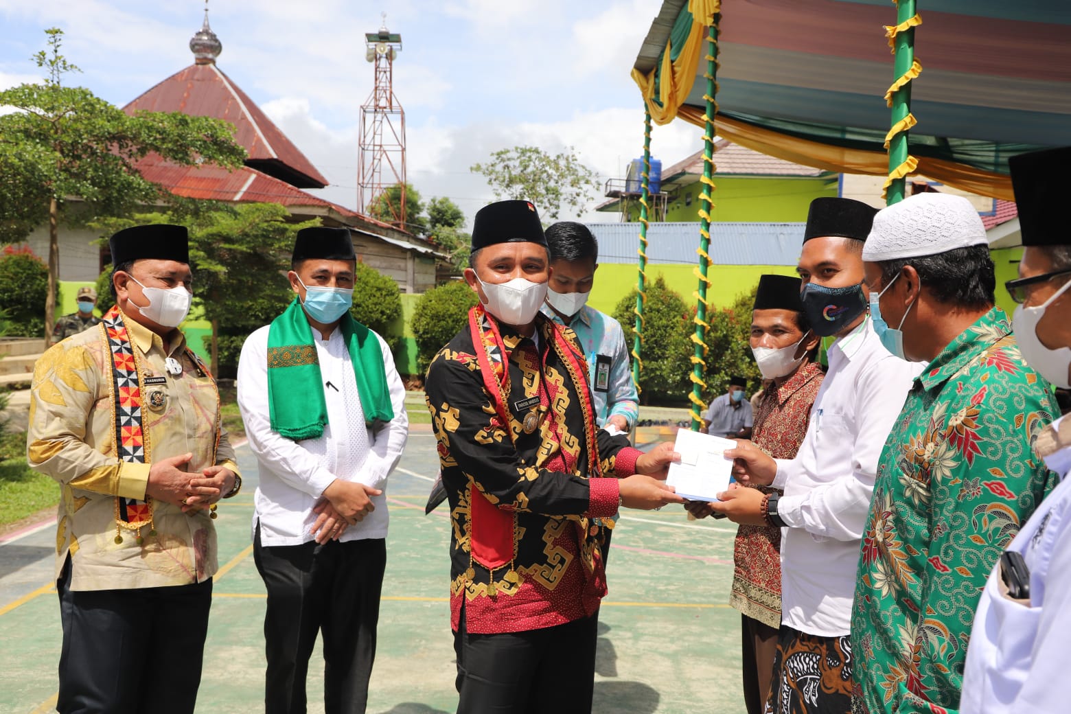 Lampung Barat (MDSnews) – Bupati Hi. Parosil, Wakil Bupati Drs. Mad Hasnurin, Ketua Tim Penggerak Pemberdayaan Kesejahteraan Keluarga (TP-PKK) Lampung Barat Partinia Parosil Mabsus, Staf Ahli Mulyono, Kepala Kementerian Agama Lampung Barat Maryan Hasan, para Kepala Sekolah, Dewan Guru, Kepala Kantor Urusan Agama Lampung Barat, tokoh Agama dan siswa-siswi sekolah setempat di Madrasah Aliyah Negeri (MAN) 1 Lampung Barat, Pekon Gunung Sugih, Kecamatan Balikbukit, Kamis 04/11/2021.
