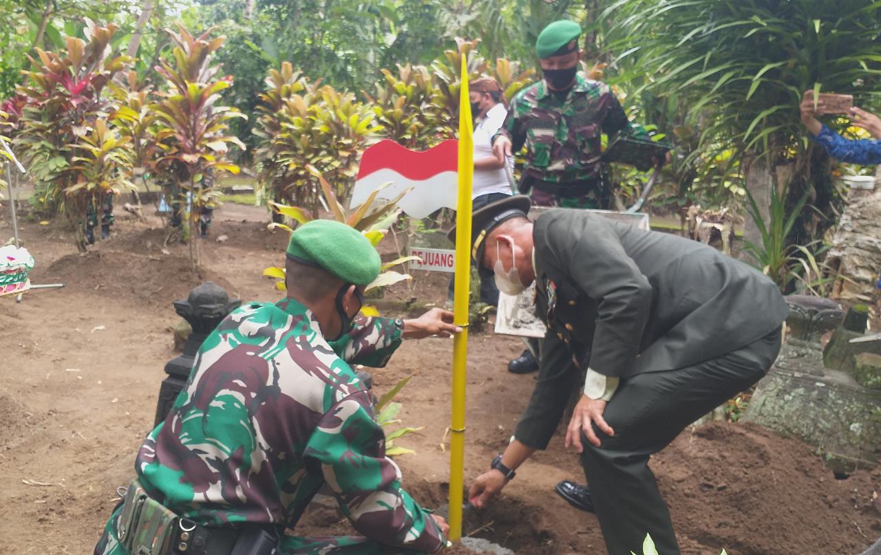 Magelang (MDSnews) – Koramil 14/Muntilan bersama Markas Ranting (Maran) Legiun Veteran Republik Indonesia (LVRI) setempat melakukan pemancangan bambu runcing atas nama PKRI Samudro Wasuto, NPV 10.031.383 di Tempat Pemakaman Umum (TPU) Gejayan Ngawen Muntilan, Rabu (10/11/21).