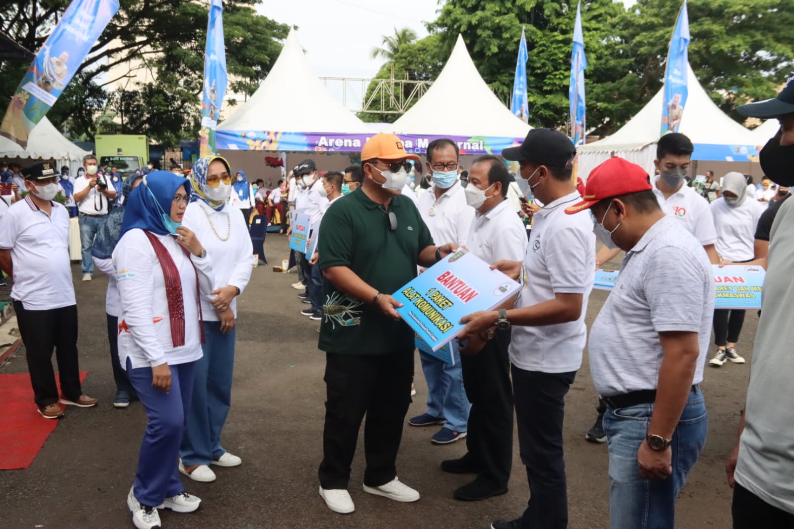 BANDARLAMPUNG (MDSnews) – Gubernur Lampung Arinal Djunaidi menyerahkan bantuan secara simbolik ke UMKM sektor kelautan dari 12 kabupaten/kota di Lapangan Saburai, Enggal, Kota Bandarlampung, Jumat (12/11/2021).