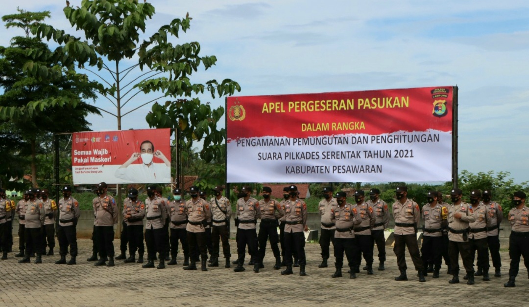 Pesawaran (MDSnews) – Kepolisian Resort Pesawaran menurunkan ratusan personel pada pelaksanaan Pemilihan Kepala Desa (Pilkades) 2021 guna mengamankan TPS yang tersebar di sejumlah lokasi yang ada di Kabupaten Pesawaran.