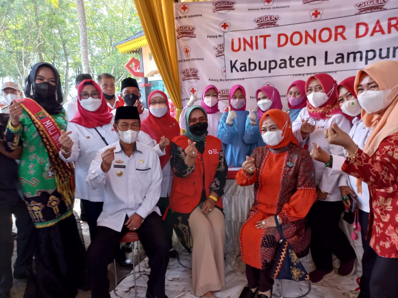 Lampung Utara (MDSnews) – Ketua PMI Provinsi Lampung Hj. Riana Sari Arinal didampingi Ketua PMI Kabupaten Lampung Utara (Lampura), Bupati Hi. Budi Utomo Tinjau kegiatan donor darah suka rela di Taman Wisata Way Tebabeng, (15/12/2021)