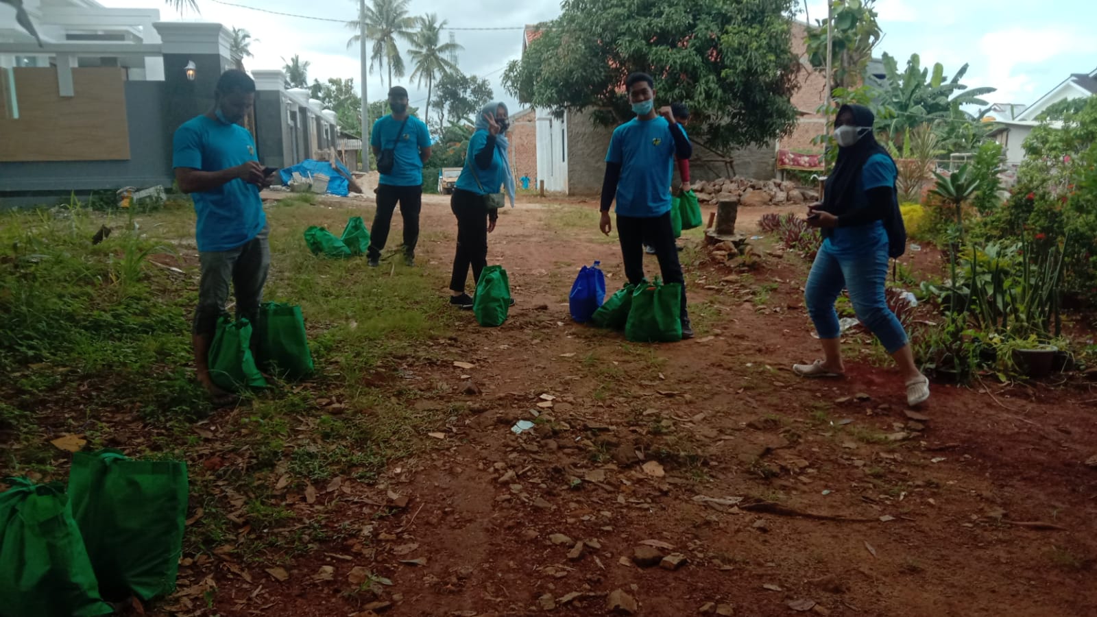 Selain gotong royong, KNPI juga berkolaborasi dengan Komunitas Berbagi Badan Intelejen Negara (BIN) memberikan bantuan 50 kantong beras kepada warga yang membutuhkan.