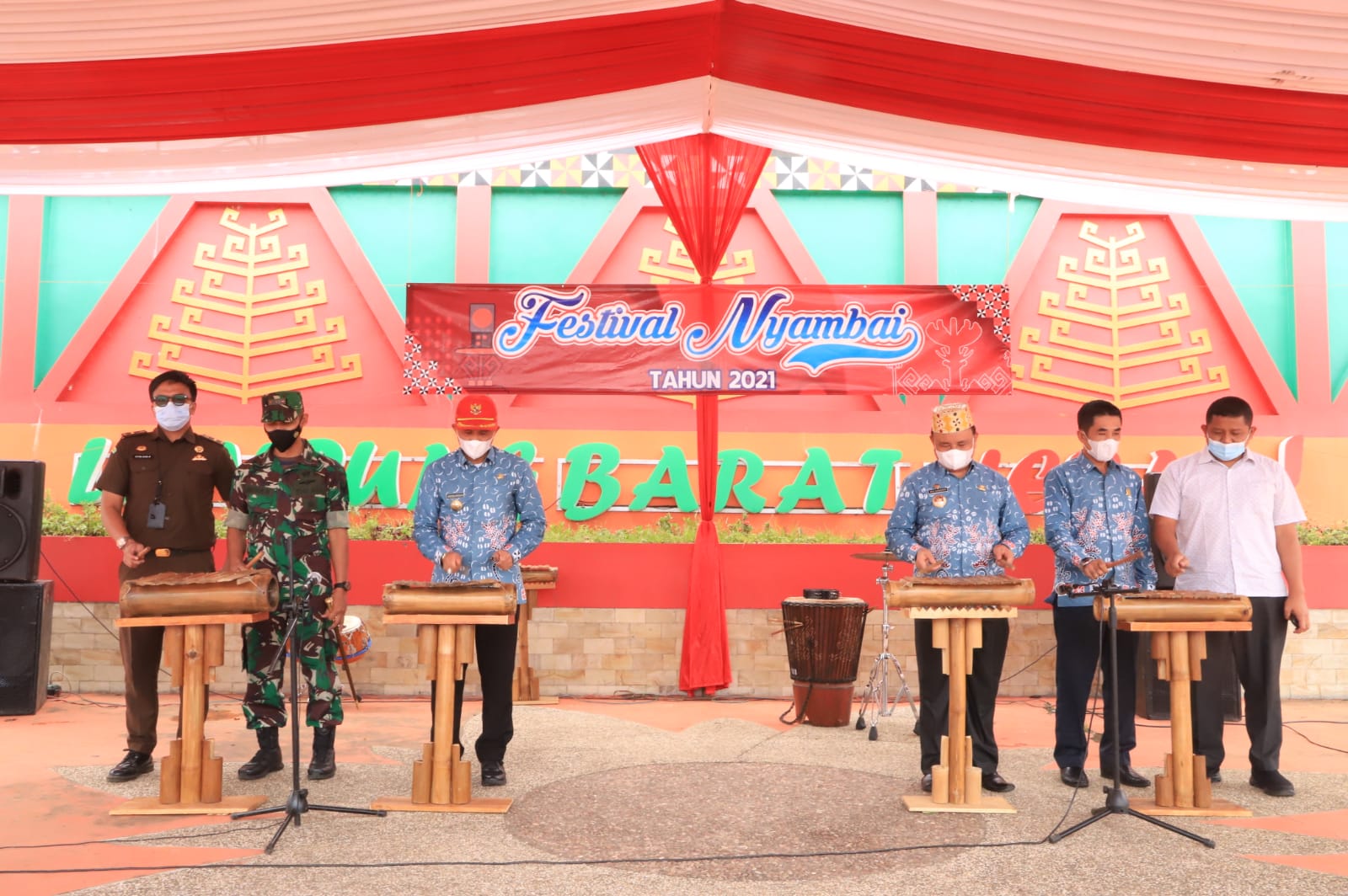 Pembukaan Festival Nyambai itu di tandai dengan pemukulan gamelang Pekhing oleh Bupati Lambar Hi. Parosil Mabsus, Wakil Bupati Lambar Drs. Mad Hasnurin dan Unsur Forkopimda, Di Taman Kota Liwa Berbunga, Kelurahan Pasar Liwa Kecamatan Balik Bukit Kabupaten Lampung Barat. Selasa (21/12/21).