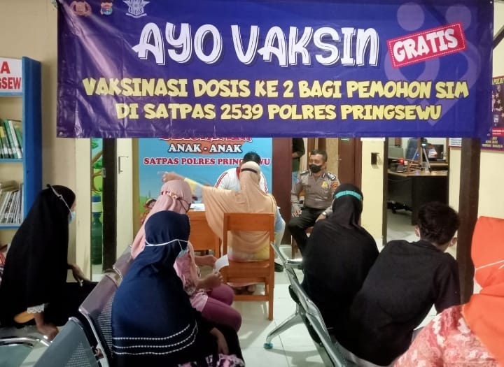 PRINGSEWU (MDSnews) – Satuan Lalu Lintas Polres Pringsewu turut andil mensukseskan program pemerintah dalam rangka percepatan akselerasi Vaksinasi diwilayahnya dengan membuka gerai vaksin, di lokasi kantor pelayanan pembayaran pajak kendaraan (Samsat) dan di kantor pelayanan Surat izin mengemudi (Satpas)