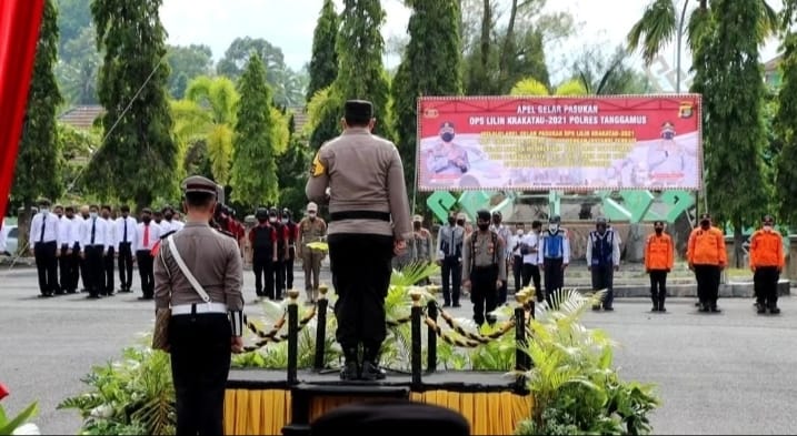 Gelar pasukan dipimpin langsung Kapolres Tanggamus dihadiri perwakilan Pemkab Tanggamus, kepala OPD dan stakeholder tetkait dengan personel terlibat baik TNI Kodim 0424 Tanggamus, Dishub, Pol PP, Basarnas, BPBP, Damkar, Senkom, RAPI dan Pramuka.