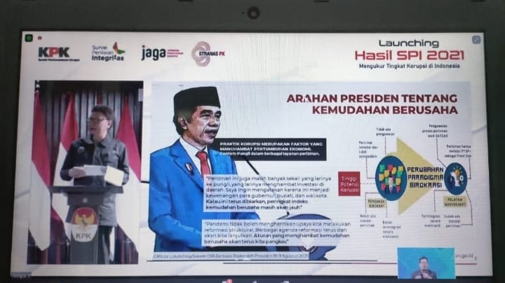 Komisi Pemberantasan Korupsi (KPK) merilis hasil Survei Penilaian Integritas (SPI) 2021 secara virtual. Survei yang bertujuan mengukur risiko korupsi di suatu kementerian/lembaga dan pemerintah daerah itu melibatkan sedikitnya 255.010 responden di 98 kementerian/lembaga, 34 pemerintah provinsi, dan 508 pemerintah kabupaten/kota.