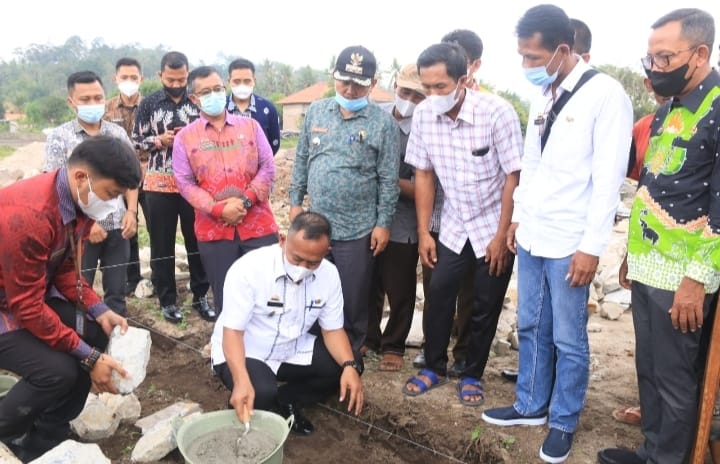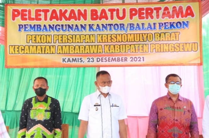 PRINGSEWU (MDSnews) – Wakil Bupati Pringsewu Fauzi melakukan peletakan batu pertama tanda dimulainya pembangunan Kantor Pekon Persiapan Kresnomulyo Barat, Kecamatan Ambarawa, Kamis (23/12/21).