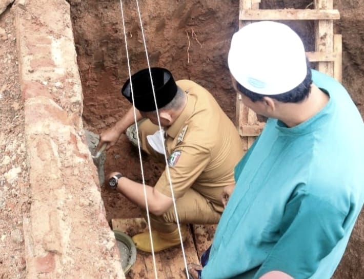 PRINGSEWU (MDSnews) – Wakil Bupati Pringsewu Fauzi melakukan peletakan batu pertama sebagai tanda dimulainya pembangunan Masjid Jami Munawir, Dusun Kalioyot, Pekon Pandansari, Kecamatan Sukoharjo, Senin (27/12/21).