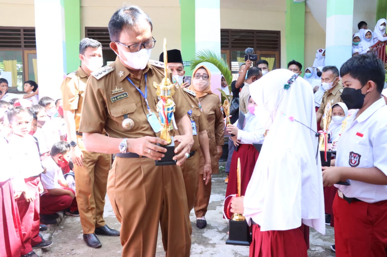 Dalam arahannya Bupati berpesan kepada Siswa-siswi agar tetap menjaga protokol kesehatan selama berlangsunnya belajar mengajar.