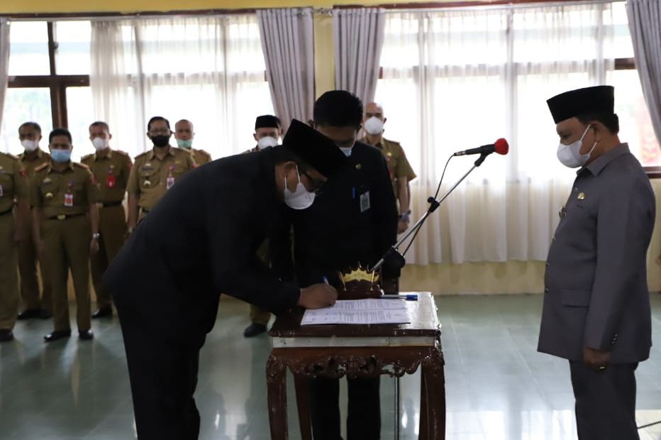 Lampung Barat (MDSnews) – Wakil Bupati Lampung Barat Drs. Mad Hasnurin melantikan/pengangkatan Pegawai Negeri Sipil (PNS) Dalam dan Dari Jabatan Pimpinan Tinggi Pratama, Administrator dan Pengawas di Aula Kagungan Lingkungan Pemerintah Daerah (Pemda) Lampung Barat, Senin (03/01/22).