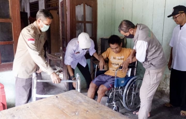 Bantuan berupa kursi roda dan tongkat medis kepada penerimanya yakni Hadi Nugroho warga Pekon Dadimulyo, Kecamatan Wonosobo, penderita Kanker Tulang.