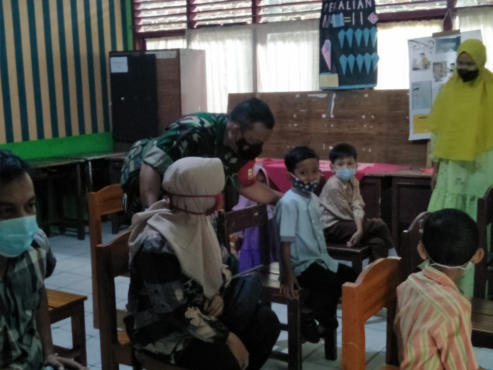 Hadir dalam kegiatan tersebut, PLH Danramil 410-06/Kedaton Kapten Cpl Made Diaz, Anggota Koramil 410-06/Kedaton, vaksinator mandiri, para Guru SD MIN 1 Tangerangkarang, Kaling 1, RT LK 1, serta Linmas Kelurahan Sidodadi. (red)