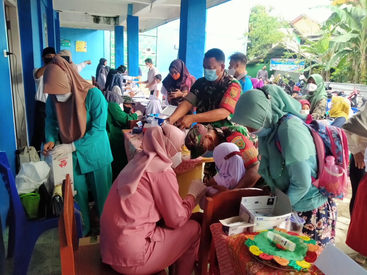 BANDAR LAMPUNG (MDSnews) – Koramil 410-06/Kedaton melaksanakan kegiatan serbuan vaksinasi dosis 1 dan 2 secara mandiri kepada anak usia 6- 11 tahun, SD MIS Ismaria, Jl. Komarudin No 57, RT 8/LK 1, Kelurahan Rajabasa Raya, Bandar Lampung, Selasa (11/1/2022) pagi.