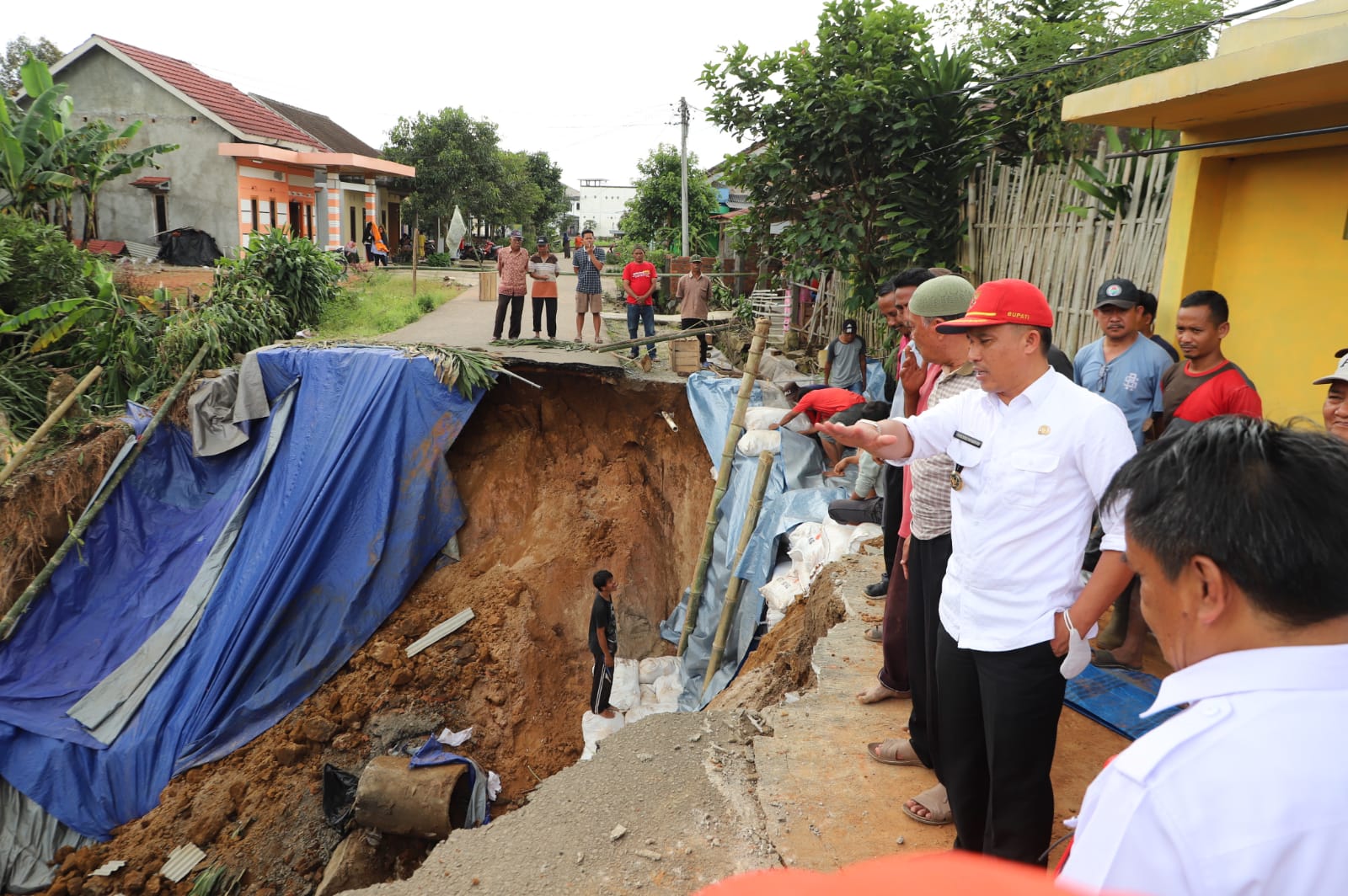 Saat peninjauan juga di serah kan bantuan terhadap beberapa kepala keluarga(KK) terdampak longsor berupa sembako, saat ini beberapa sudah mengosongkan rumah karena khawatir terseret longsor.(Frans/Hari)