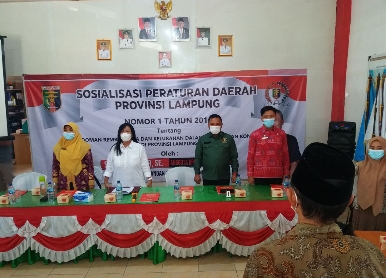 Kegiatan sosialisasi peraturan daerah ini dilaksanakan di Desa Sumber Jaya, Kecamatan Jati Agung, Lampung Selatan.