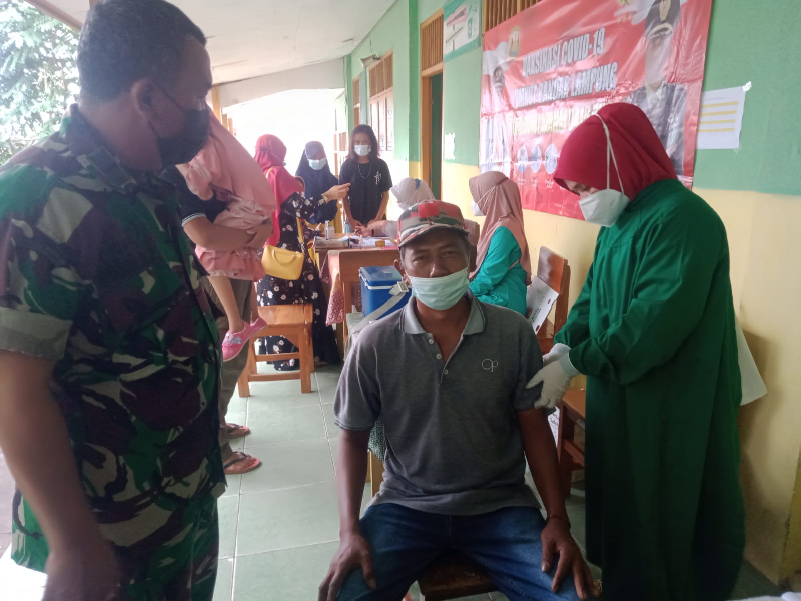 Hadir dalam Kegiatan, Plh Danramil 410-06/Kedaton Kapten Cpl Made Dias, Anggota Koramil 410-06/Kedaton, Vaksinator Mandiri, Kaling 1 dan RT 01, serta masyarakat Kelurahan Kampung Baru. (red).