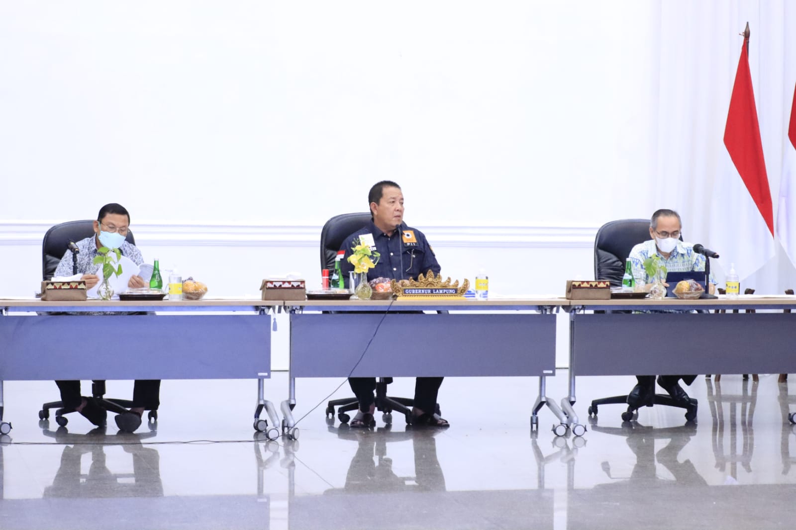 BANDAR LAMPUNG (MDSnews) – Gubernur Arinal Djunaidi memimpin Rapat Pembahasan terkait Percepatan Implementasi Program Kartu Petani Berjaya (KPB) didampingi oleh Ketua KTNA Provinsi Lampung Hanan Rozak dan Staf Ahli IT Gubernur Lampung Syopiansyah Jaya Putra, di Mahan Agung, Senin (7/2).
