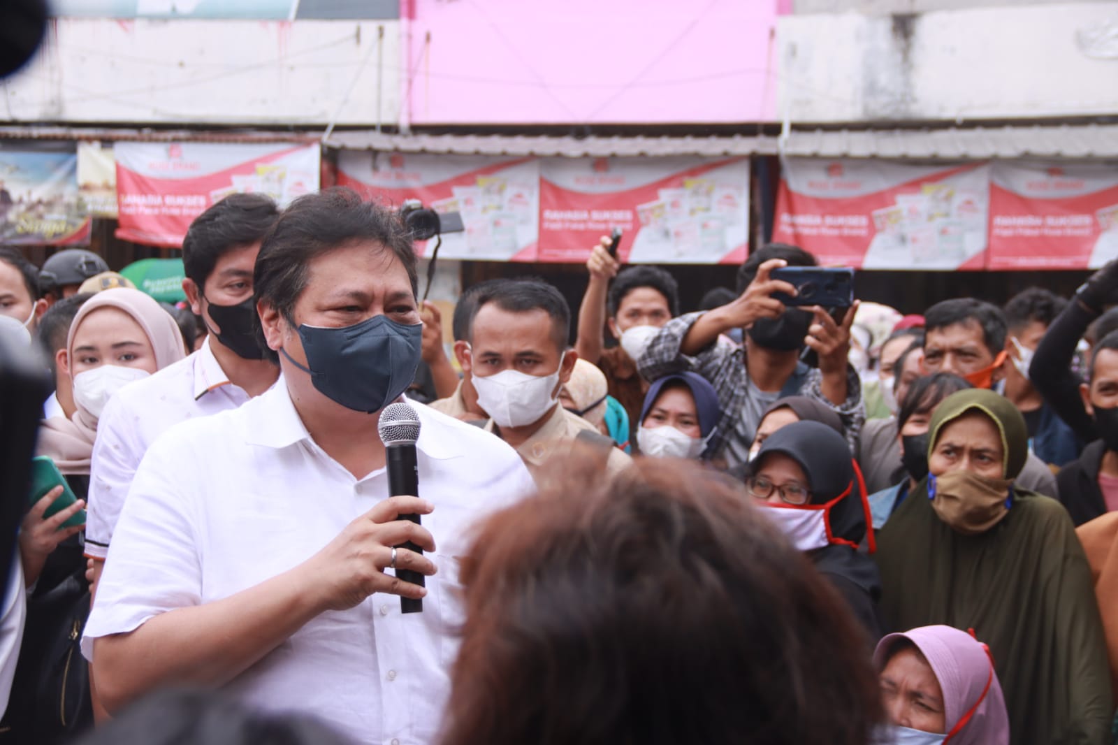 BANDAR LAMPUNG (MDSnews) – Menteri Perekonomian RI Airlangga Hartarto, didampingi Gubenur Lampung Arinal Djunaidi, meninjau operasi pasar di Pasar Kangkung, Bandar Lampung, Sabtu (12/2/22).