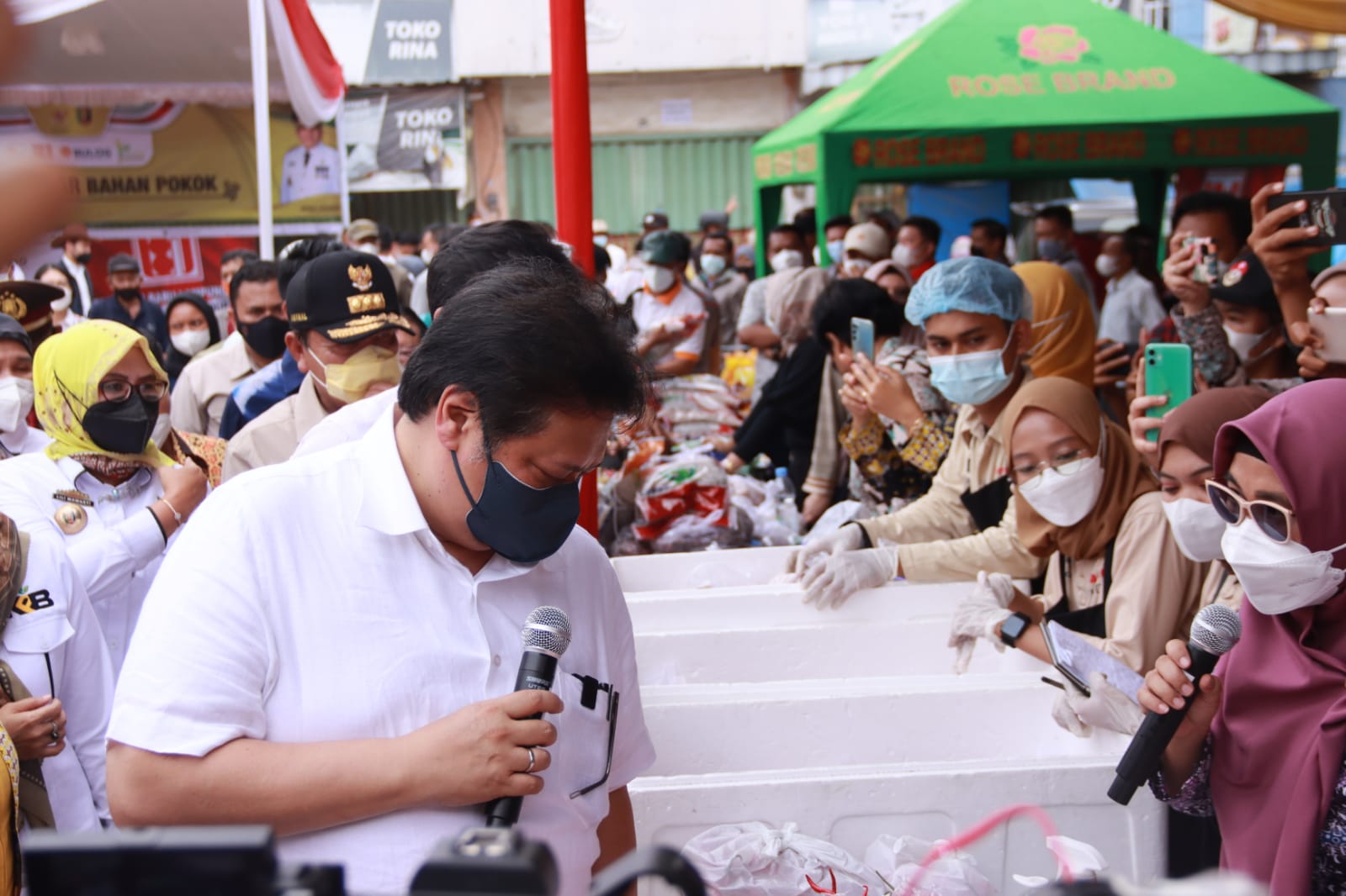 “Tadi sudah kita cek harga beras baik. Kemudian harga gula dan daging juga baik,” kata Menteri Airlangga.