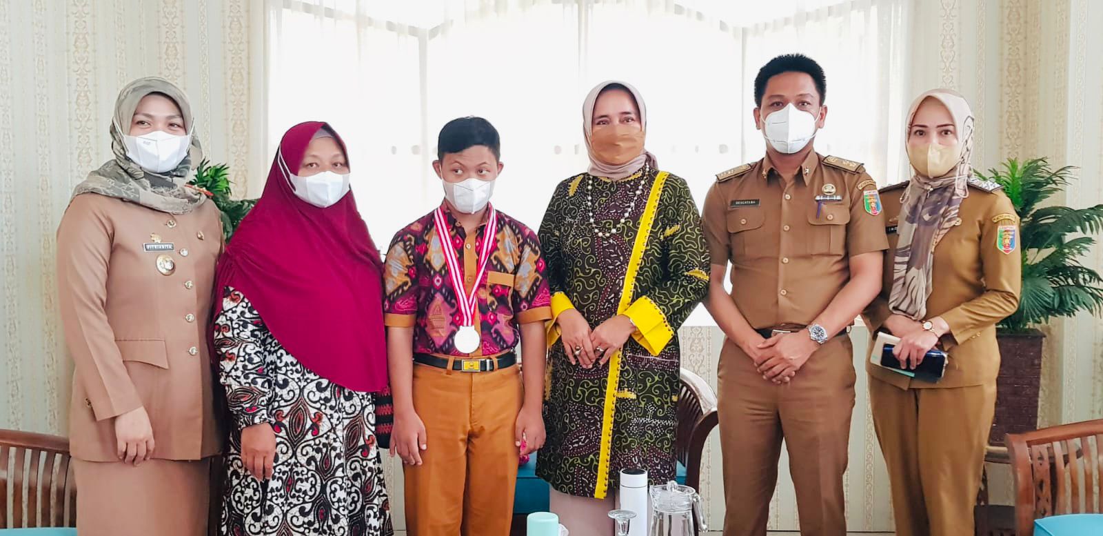 Bandar Lampung (MDSnews) — Ketua Umum Persatuan Wanita Olahraga Seluruh Indonesia (PERWOSI) Provinsi Lampung, Riana Sari Arinal menerima Audiensi SOIna (Special Olympics Indonesia) dan Atlet peraih medali perak pada PESONA (Pekan Olahraga Special Olympics Nasional) 2021 atas nama Faiz, bertempat di Kantor PKK Provinsi Lampung, Senin (14/02/2022).