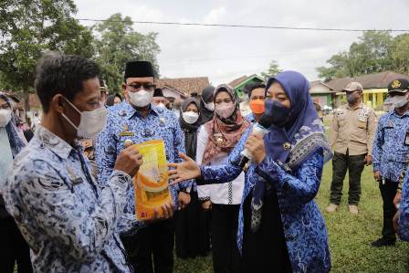 LAMTENG (MDSnews) – Wakil Gubernur Lampung Chusnunia Chalim, didampingi Wakil Bupati Lampung Tengah Ardito Wijaya, meninjau Operasi Pasar Murah (OPM) Minyak Goreng, yang dilaksanakan di Pasar Sidowaras, Bumi Ratu Nuban, Kabupaten Lampung Tengah, Kamis (17/2/2022).