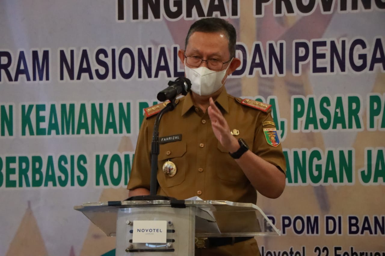 Bandar Lampung (MDSnews) – Sekretaris Daerah Provinsi Lampung, Fahrizal Darminto membuka kegiatan Forum Advokasi Komitmen Pemda dan Lintas Sektor Tingkat Provinsi Lampung Program Nasional Badan Pngawas Obat dan Makanan, bertempat di Hotel Novotel Bandar Lampung, Selasa (22/2/22).