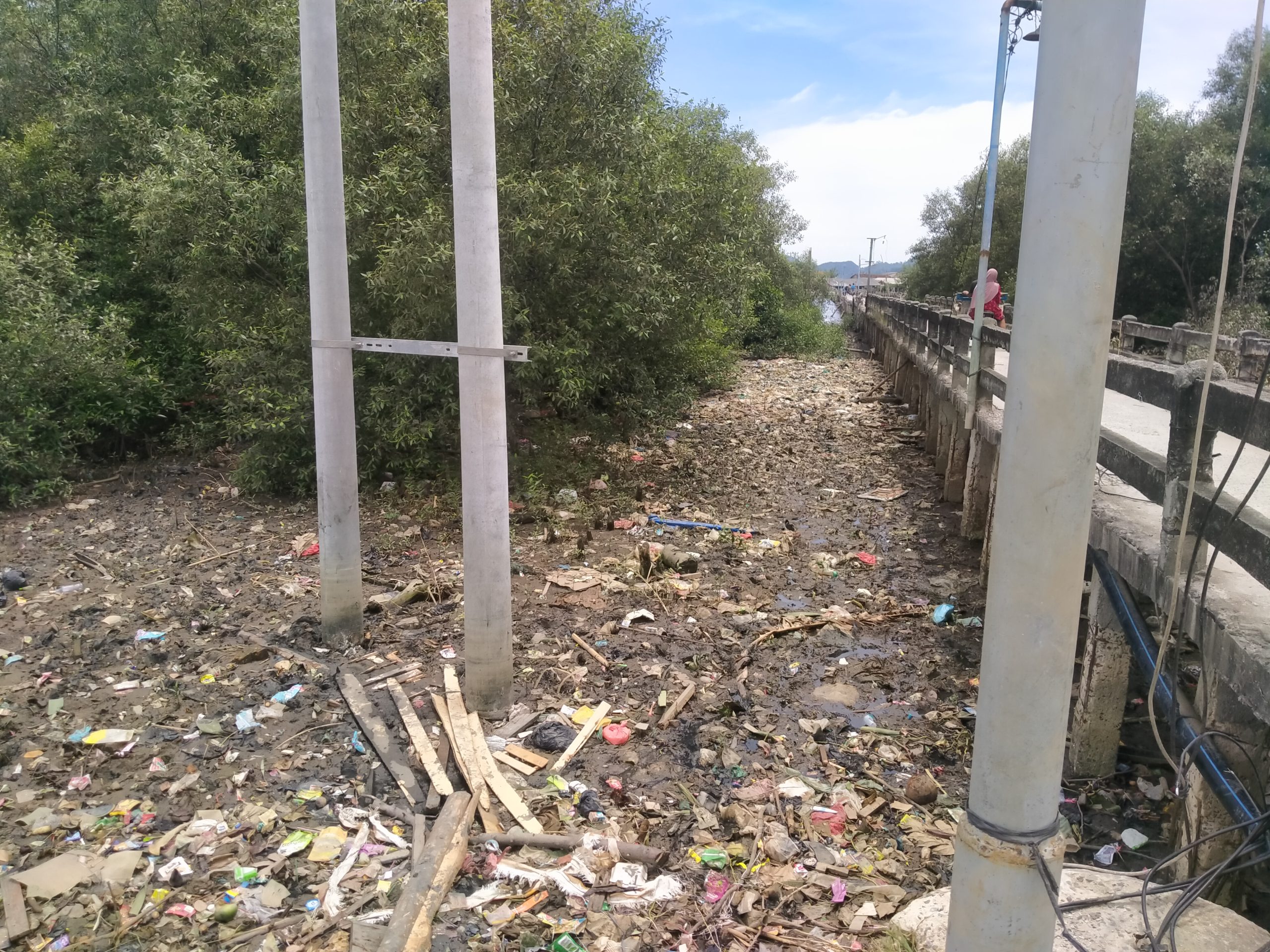 Berdasarkan pantauan saat air laut pasang, Terlihat jelas sampah plastik mengambang berserakan hampir diseluruh pinggiran Pulau Sentra pembuatan ikan asin tersebut.