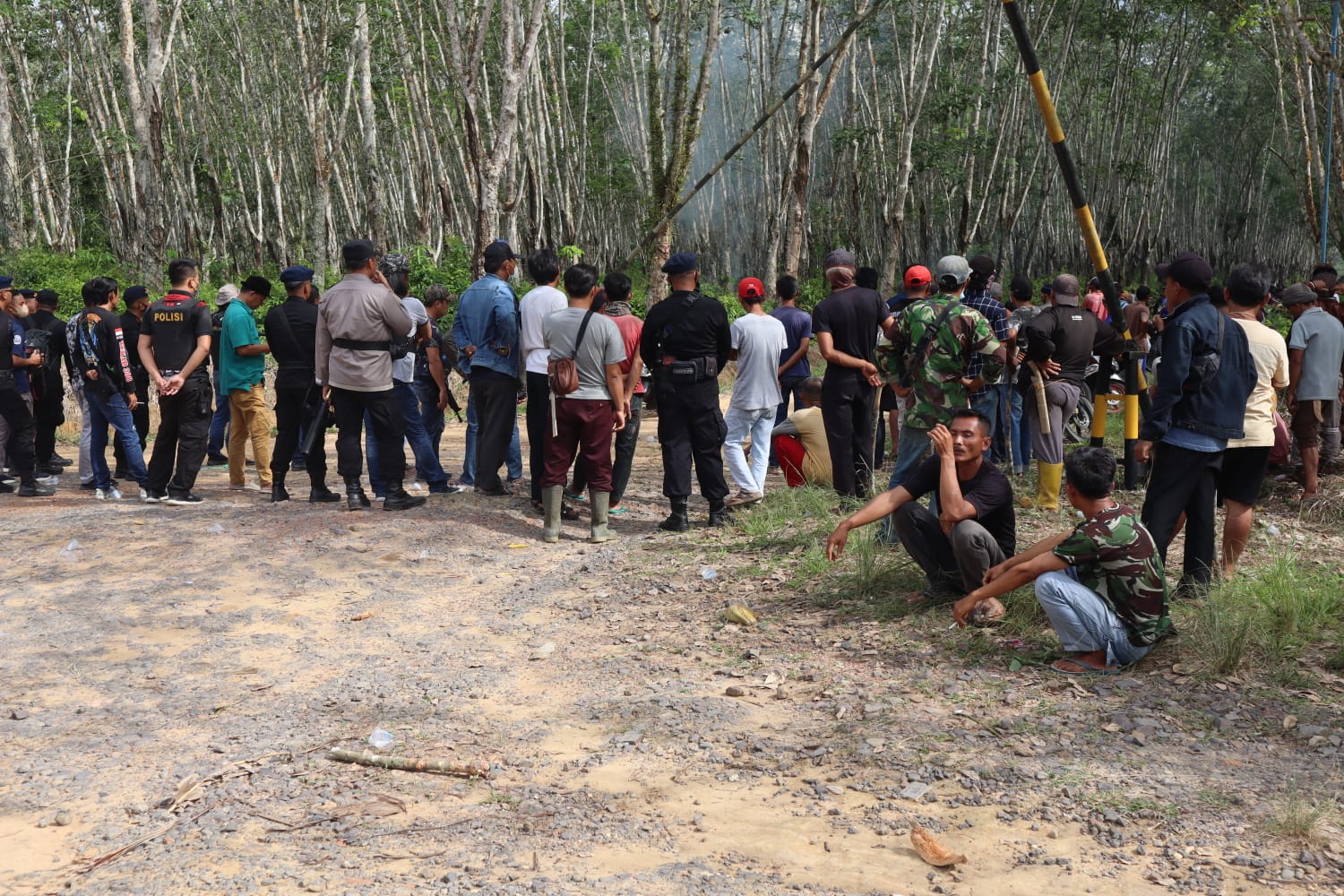 “Memanas kelompok tersebut dikarenakan salah satu masyarakat 5 keturunan an. Aminsyah sekira pukul 12.30 wib telah diamankan oleh Satreskrim Polres Tulang Bawang Barat terkait pemanggilan ke-2 sehubungan dengan perkara pengrusakan/ penebangan pohon karet berdasarkan LP/B/25/1/2022 /SPKT/ RES TUBABA/ POLDA LPG tanggal 26 januari 2022.