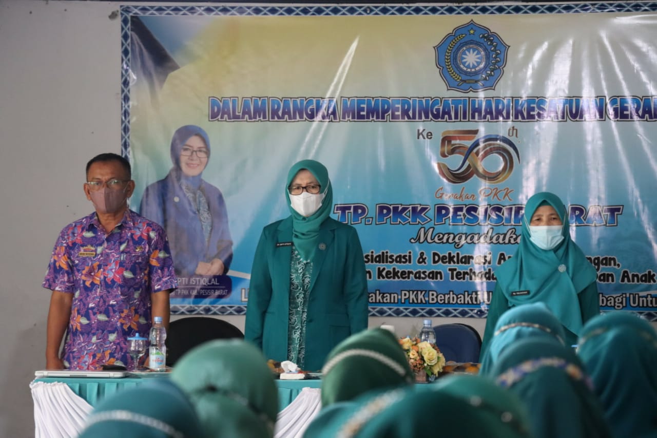 Pesibar (MDSnews ) – Ketua Umum TP PKK Kabupaten Pesisir Barat Septi Istiqlal Membuka acara Sosialisasi Anti Perundungan Bullying dan kekerasan Terhadap Perempuan dan anak Dalam rangka Peringatan Hari Kesatuan Gerak PKK ke 50 kabupaten Pesisir Barat, di sekretariat PKK, jum’at (11/3/22).