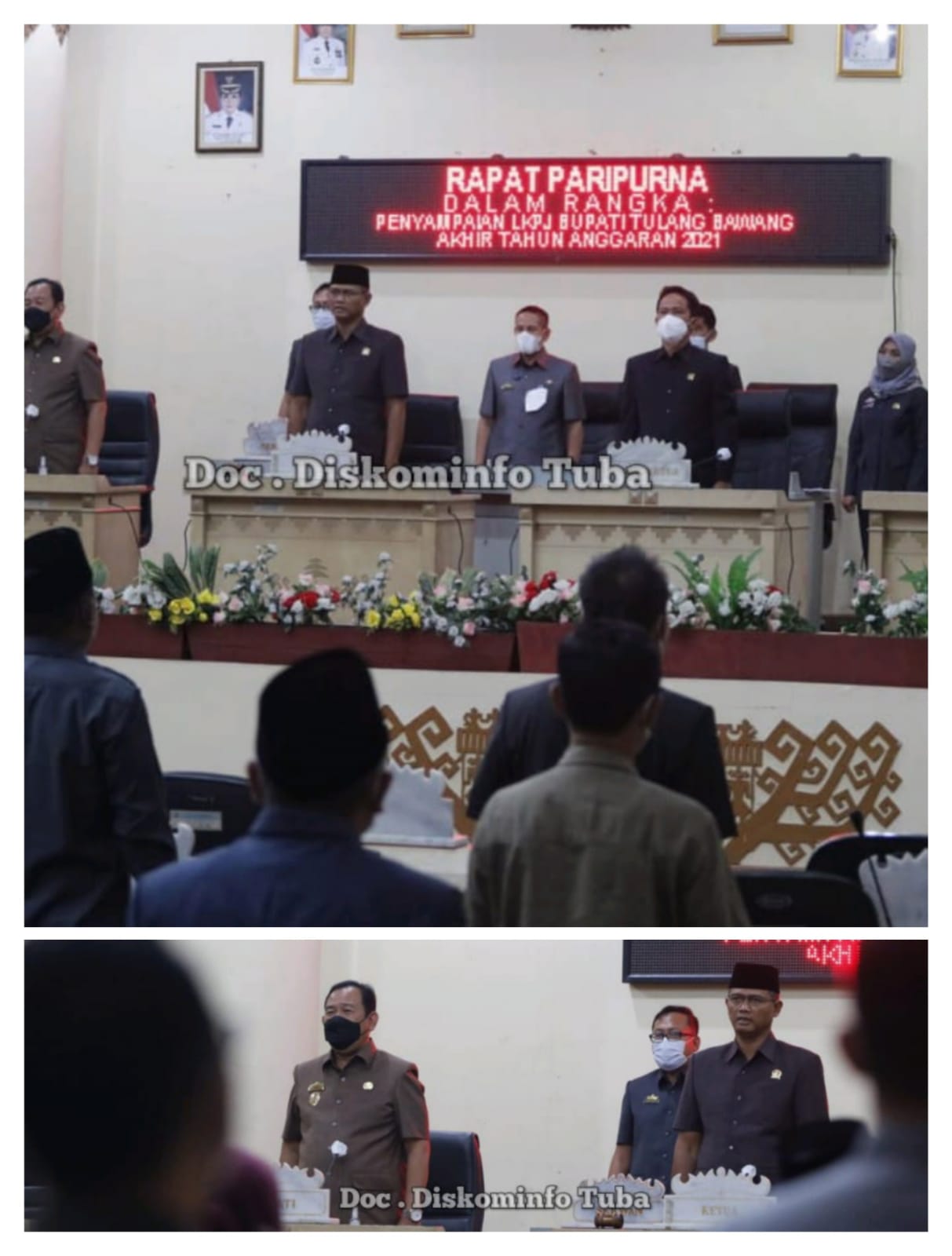 Dalam Kegiatan ini Bupati Tulang Bawang diwakili oleh Sekretaris Daerah Kabupaten Tulang Bawang dan didampingi oleh seluruh kepala OPD di lingkup Pemerintah kabupaten Tulang Bawang. Dalam kegiatan ini sekretaris daerah kabupaten Tulang Bawang membacakan LKPJ Bupati Tulang Bawang tahun anggaran 2021 di hadapan ketua DPRD Kabupaten Tulang Bawang dan seluruh anggota DPRD Kabupaten Tulang Bawang.