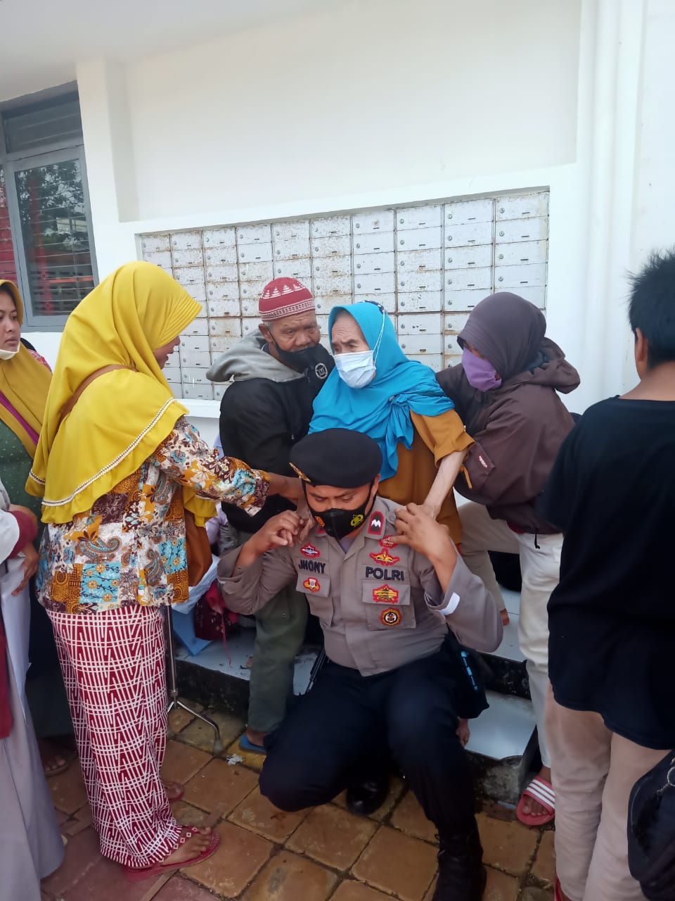 Aipd a Joni Iskandar Kanit Sabhara Polsek Balik Bukit, saat sedang melaksanakan Pam melihat seorang lansia sedang duduk mengantri untuk mengambil bantuan.