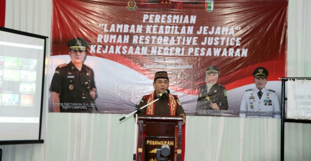Pesawaran (MDSnews) – Kepala Kejaksaan Tinggi (Kajati) Lampung, Nanang Sigit Yulianto, resmikan Rumah Restorative Justice (RJ) atau Lamban Keadilan Jejama Kejaksaan Negeri (Kejari) Gedong Tataan Kabupaten Pesawaran di Desa Bogorejo Kecamatan Gedong Tataan.
