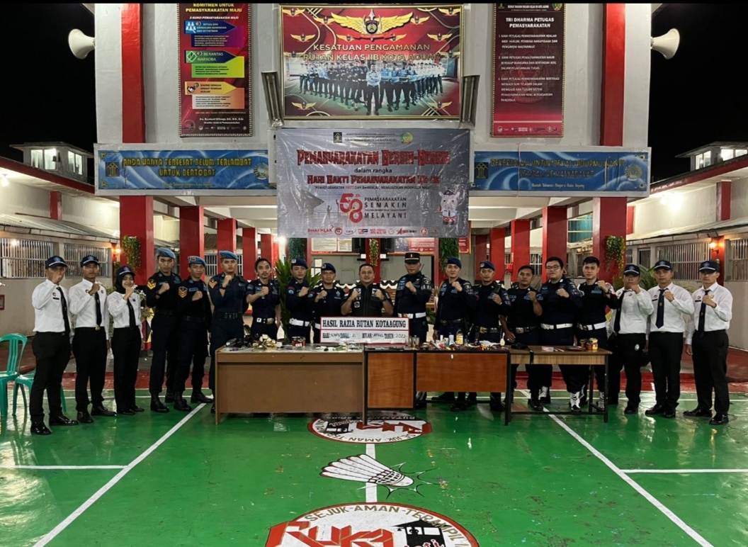 Kepala Rutan Ahmad Sobirin Soleh dan Kepala Kesatuan Pengamanan Rutan Boy Naldo Qultom menyampaikan, hasil razia gabungan dalam blok kamar hunian menemukan, ponsel, senjata tajam, kartu, sendok, ikat pinggang, gelas , alat cukur, potongan besi,charger ponsel, korek gas, gunting.